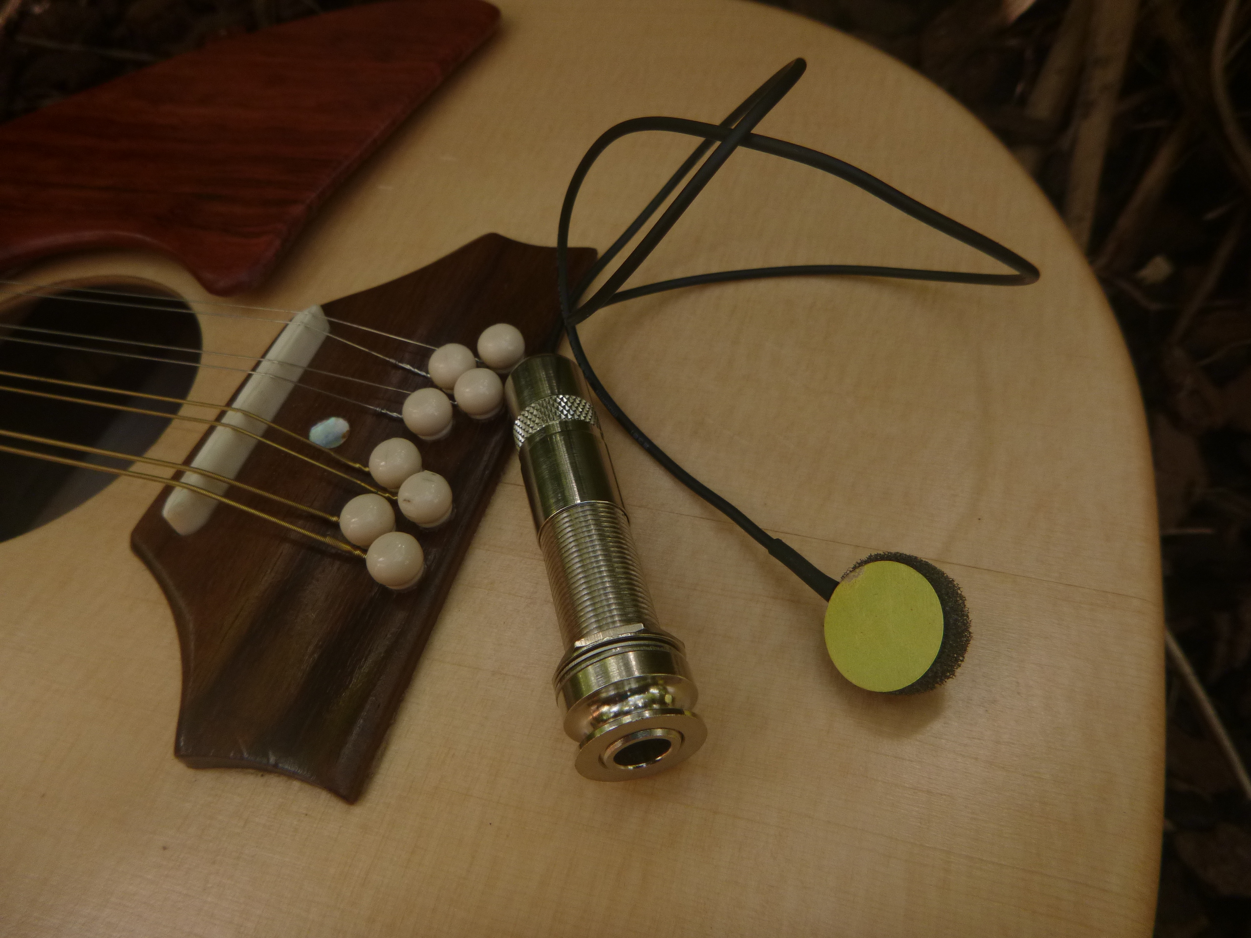 This Canadian manufactured passive piezo transducer has a wide-range response and fits to the underside of soundboard (does not require a battery).