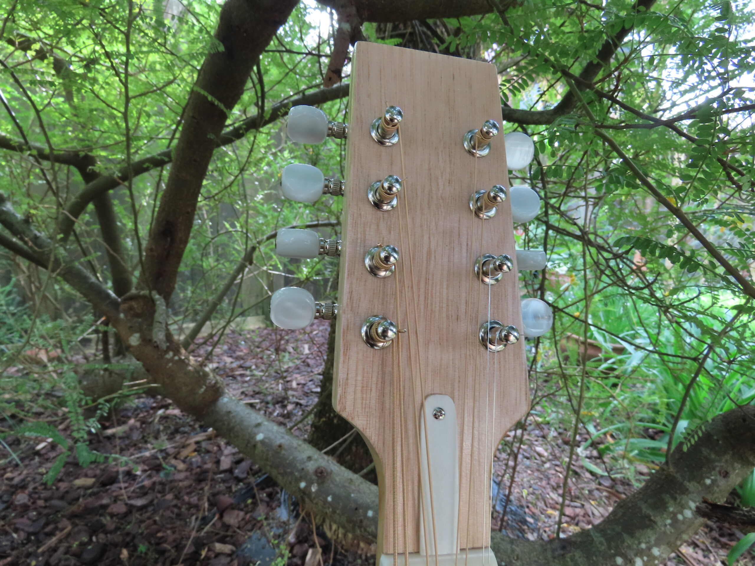 Victorian ash headstock overlay, heel, floating scratch-plate and inlays.
